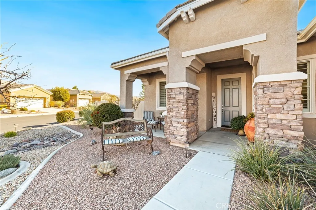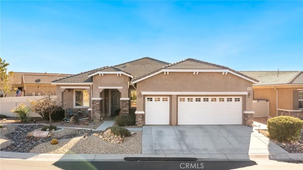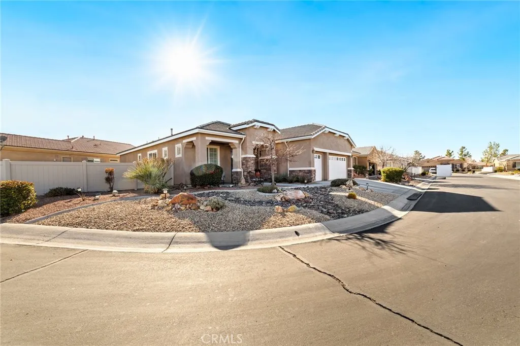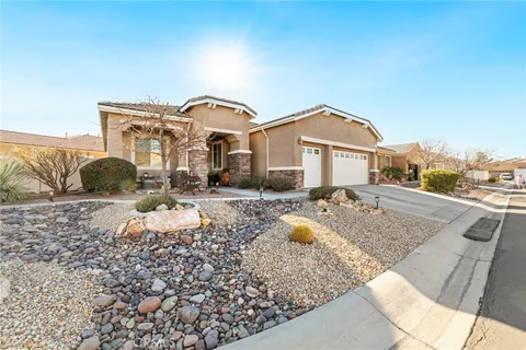 Looking for a beautifully maintained, spacious single-story home with room to breathe - inside and out? Welcome to one of the largest and most desirable models in Apple Valley's premier 55+ gated community! This stunning 3-bedroom, 2,200+ sq. ft. home is the perfect blend of comfort and style, offering soaring 10-foot ceilings and a true open-concept layout ideal for both relaxation and entertaining. Step into the expansive kitchen featuring wraparound counters, a generous bar seating area, and an adjacent dining nook - plus a formal dining room perfect for holiday gatherings or intimate dinners. The home has been tastefully updated with newer wood vinyl flooring and fresh paint, creating a modern, move-in-ready feel. Outside, you'll find what truly sets this property apart: a massive corner lot with a backyard two to three times the size of neighboring homes. The desert-scaped front and back yards offer low-maintenance beauty, while the vinyl fencing adds peace and privacy. Enjoy the outdoors from your covered backyard patio - your private oasis. Need storage or space for projects? The three-car garage provides all the room you need. All of this is nestled in a vibrant gated community of Sun City, Del Web, offering a wealth of amenities: a championship golf course, clubhouse, pools, tennis courts, and a full calendar of social events and activities - all for a low HOA fee. Homes like this don't come around often. Don't miss your chance to own this exceptional property - schedule your showing today!