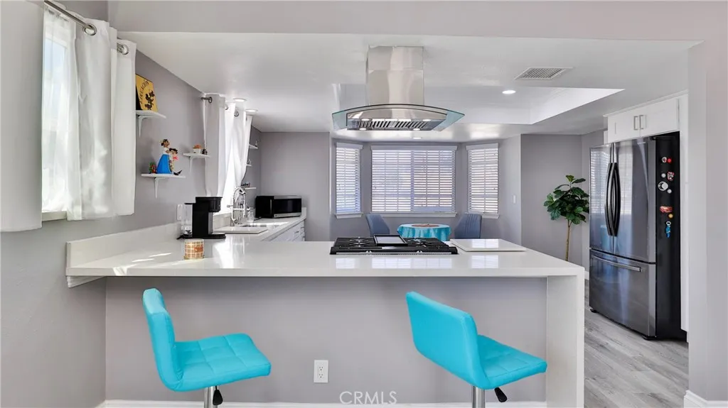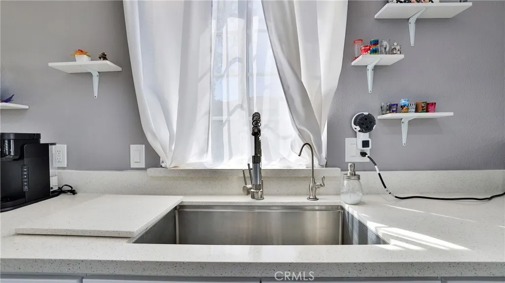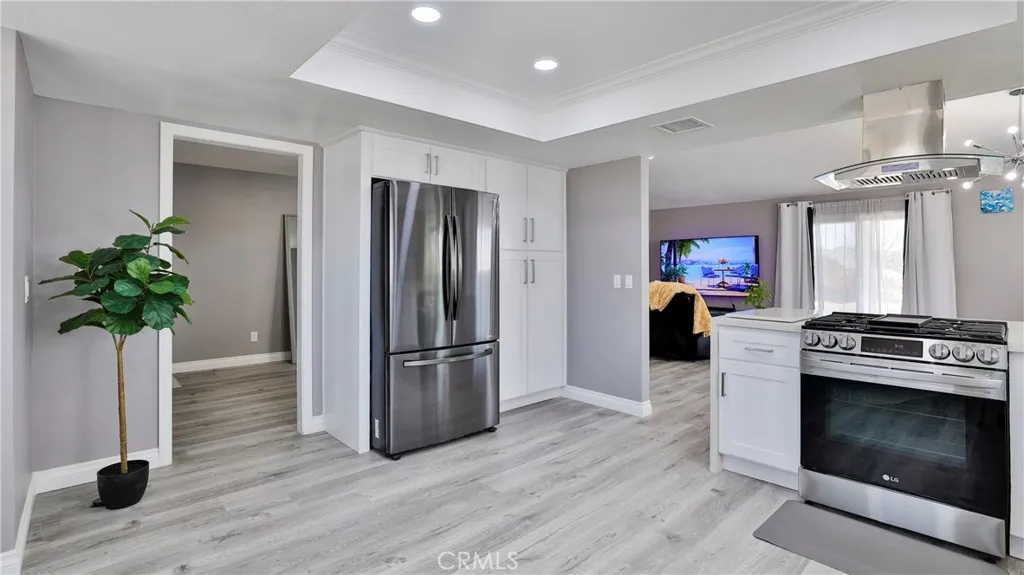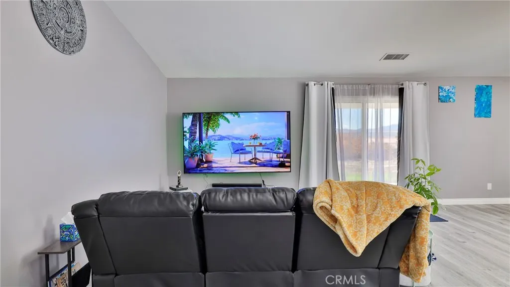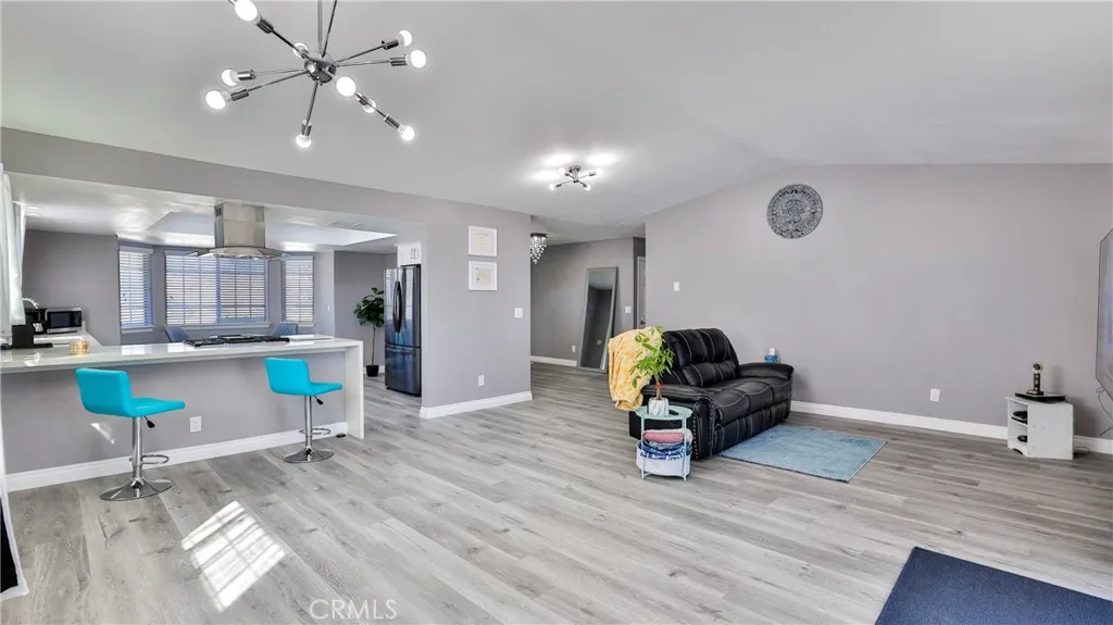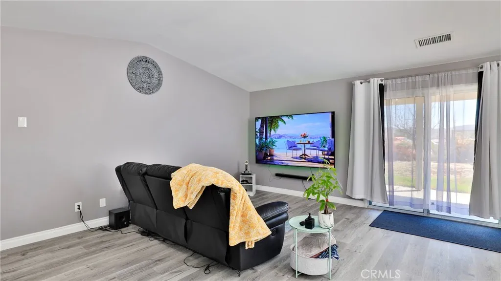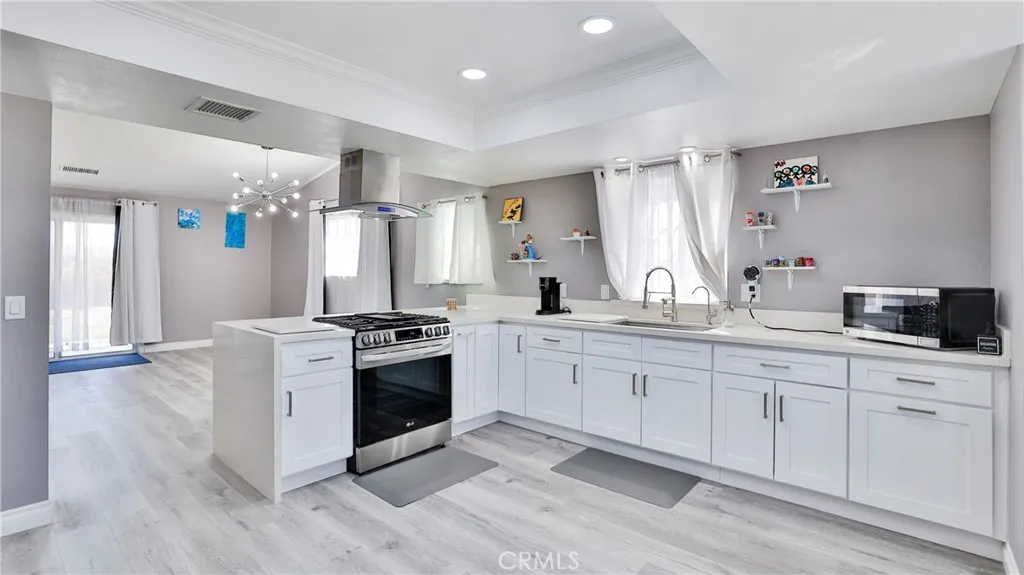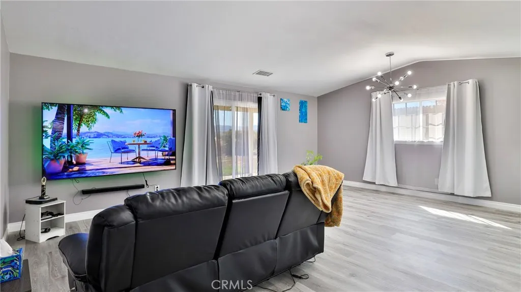Welcome to this beautifully remodeled home in the coveted Silver Lakes community of Helendale. Step inside to discover a tastefully updated interior adorned with warm, clean colors and an abundance of natural light streaming in through numerous windows. The spacious primary suite features a modern frosted glass barn door, a walk-in closet, and a stylish stand-up vanity in the primary bathroom. The primary bathroom boasts a modern Sputnik chandelier and a sleek waterfall faucet. You'll love the open-concept kitchen, complete with an LG oven featuring a built-in air fryer, a glass stove hood, a convenient breakfast bar, and recessed lighting. Additional kitchen highlights include a slide-out cabinet trash can, a Pull-Down Kitchen Faucet with Sprayer, and a new garbage disposal. In the kitchen and bathrooms, you ll find white waterproof wood blinds, double curtain rods in every window (including the sliding door), and single-pole decorative switches. The hallway entrance is adorned with an elegant chandelier, setting the tone for the home's upscale ambiance. Two modern Sputnik chandeliers are in the living room, and Crystal Flush Mount LED Ceiling Pendant Lamps can be found in both the hallway entrance and bedroom. The generous backyard offers serene lake views, providing the perfect backdrop for outdoor relaxation and entertainment. As part of the HOA, you'll enjoy access to an array of amenities, including a gym, game room, golf course, tennis courts, pool, spa, and sauna room with shower facilities in the pool area. Additionally, residents have access to the lake for swimming, fishing, and boating.