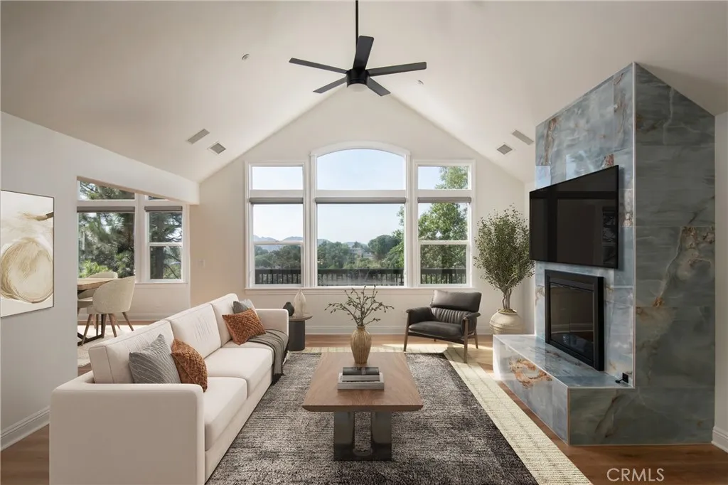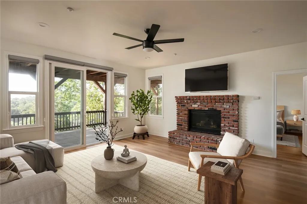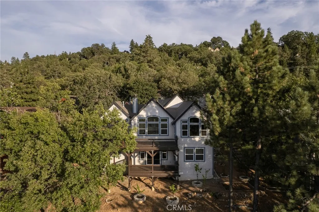 Surrounded by fruit trees that feel like your own private orchard, this 4 bedroom, 2.5 bath home offers comfort, convenience, and mountain charm. Level entry from both the driveway and two car garage makes everyday living simple. Inside, a sun filled living room centers around the updated marble fireplace, while the kitchen, dining, and living spaces open to panoramic mountain views. Step out onto the expansive deck to enjoy the fresh mountain air and take in the scenery. The main level includes the primary ensuite, complete with its own deck access. Downstairs, you'll find three additional bedrooms and a second living space that flows out to a private deck, ideal for morning coffee, evening unwind, or hosting guests. Located just minutes from Tavern Bay Beach Club, Lake Arrowhead Village, McKay Park, and miles of forest trails, this home puts you in the heart of all the mountain lifestyle has to offer. Lake rights are included, making it an ideal place to enjoy year round.