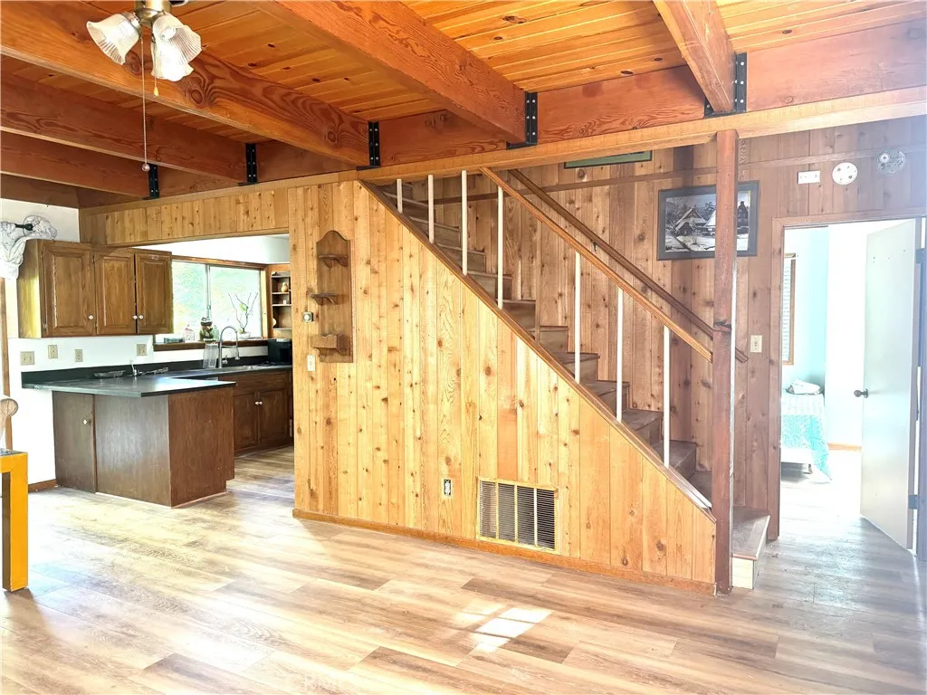 Partial Furnished 3BR/2BA Cabin Home in Arrowhead Woods - Lake Rights Included. This charming home has 3-bedrooms, 2-bath just minutes from the lake, Village, grocery stores, and dining. Main level offers level entry, a cozy living room with wood-burning stove, kitchen with breakfast bar, one bedroom, full bath, and laundry room next to the kitchen. Upstairs has two bedrooms, a full bath with new tub, and a small loft for kids. Driveway and street parking available.